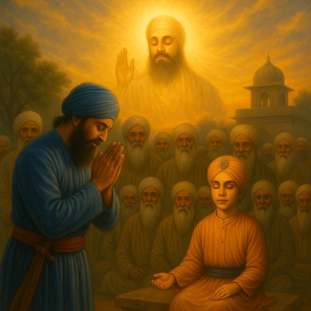 उस क्षण समूचा आनंदपुर साहिब प्रकाश से भर उठा। संगत के होंठों से “वाहे गुरु, वाहे गुरु” की गूंज उठी।किसी ने आकाश की ओर देखा तो लगा, जैसे स्वयं गुरु तेग बहादुर जीआसमान से आशीर्वाद दे रहे हों।
