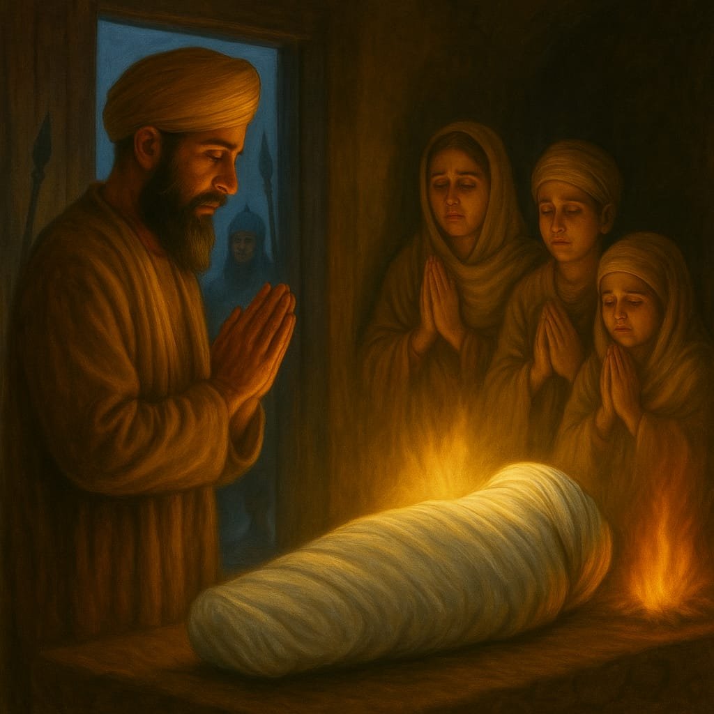 रात का समय था… दिल्ली की गलियाँ सन्नाटे में डूबी थीं। चारों ओर मुग़ल सैनिकों का पहरा था।यहीं, रकाबगंज क्षेत्र में, लख्खी बंजारा अपने घर के भीतरगुरु तेग बहादुर जी के धड़ का अंतिम संस्कार करने की तैयारी में था।उन्होंने अपनी पत्नी और बेटे को देखा,उनके चेहरों पर भय नहीं, बल्कि भक्ति और निश्चय का तेज़ था।